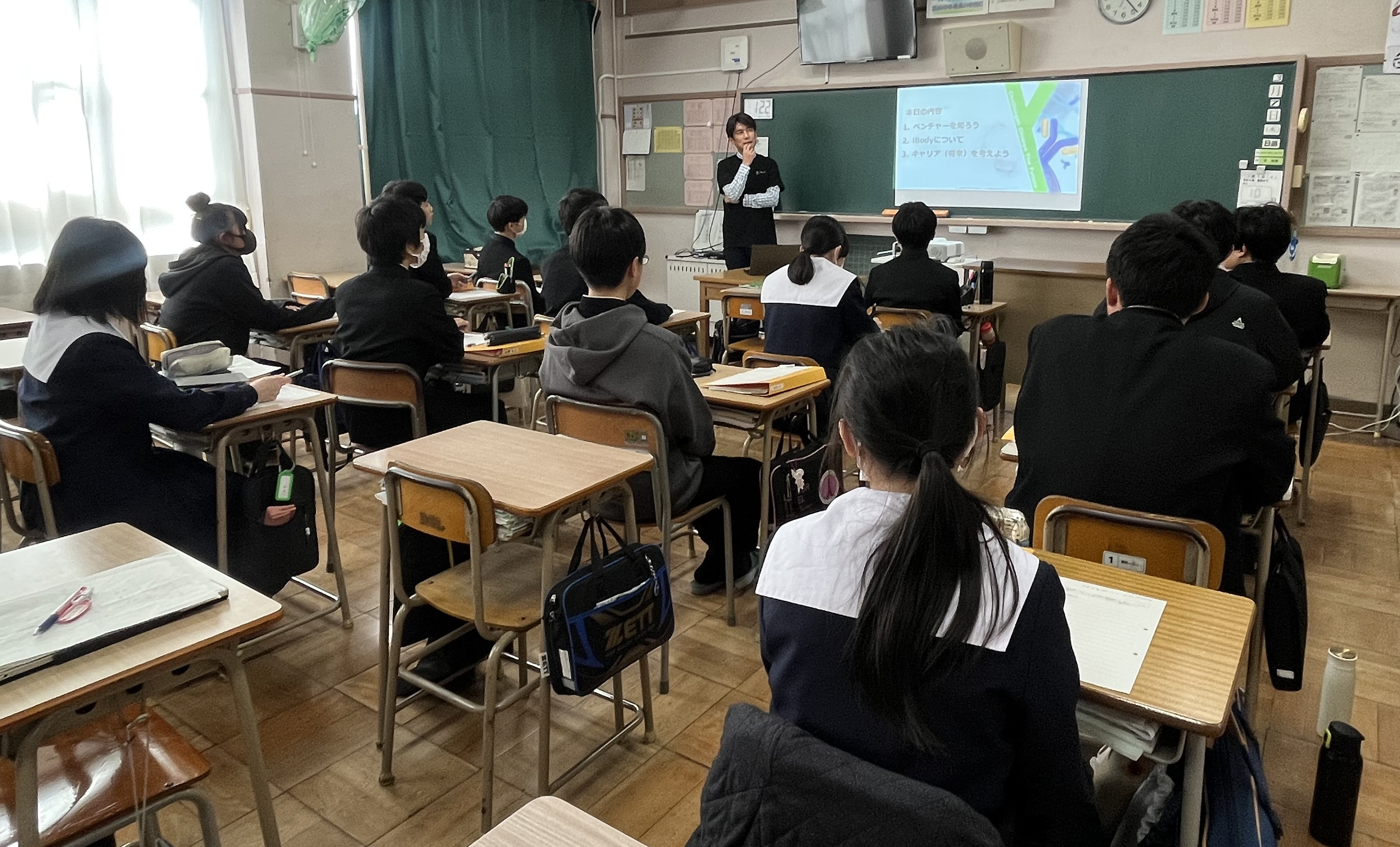 March 7th, Our representative Amakusa held a visiting class for the purpose of career education at Nagoya City Kitayama Junior High School.